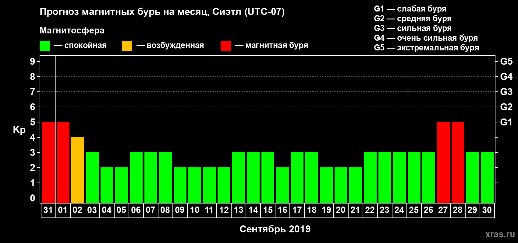 Прогноз магнитных бурь в Сиэтле — 31 августа 2019 года