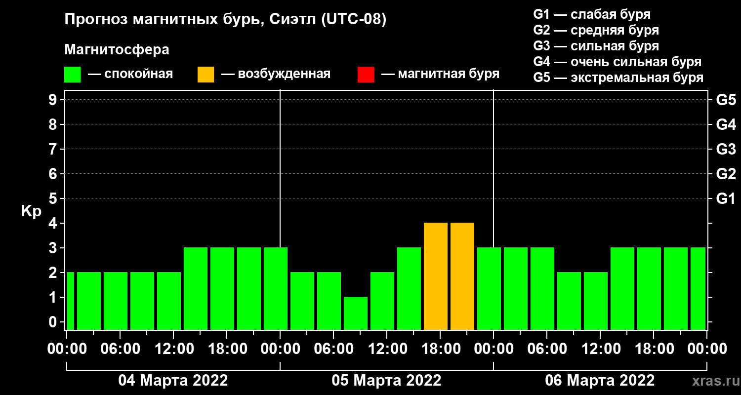 Прогноз магнитных бурь в Сиэтле — 4 марта 2022 года