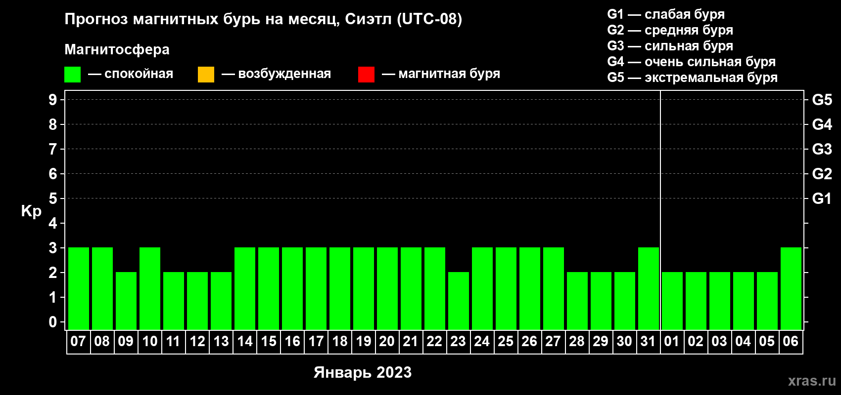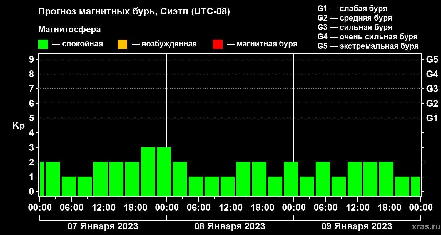 Прогноз магнитных бурь в Сиэтле — 7 января 2023 года