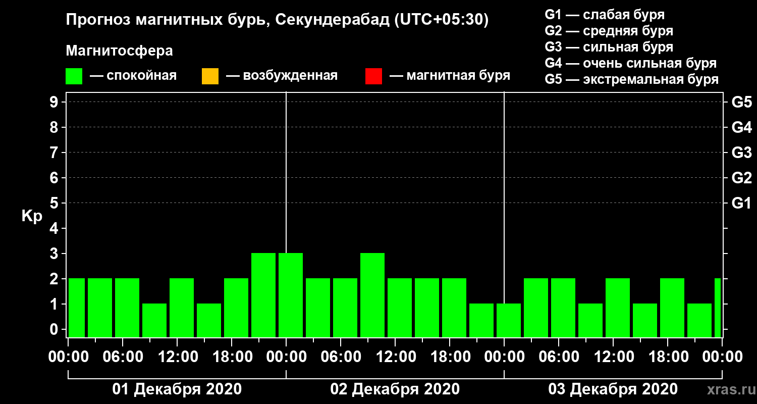 Прогноз магнитных бурь в Секундерабаде — 1 декабря 2020 года