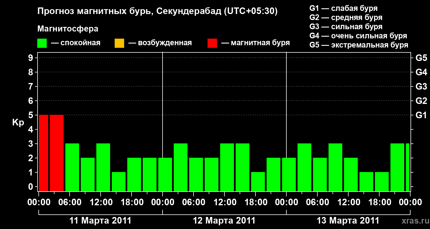Прогноз магнитных бурь в Секундерабаде — 11 марта 2011 года