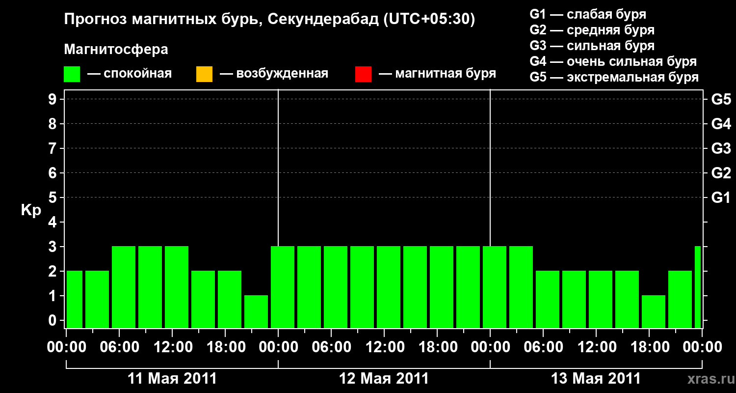Прогноз магнитных бурь в Секундерабаде — 11 мая 2011 года