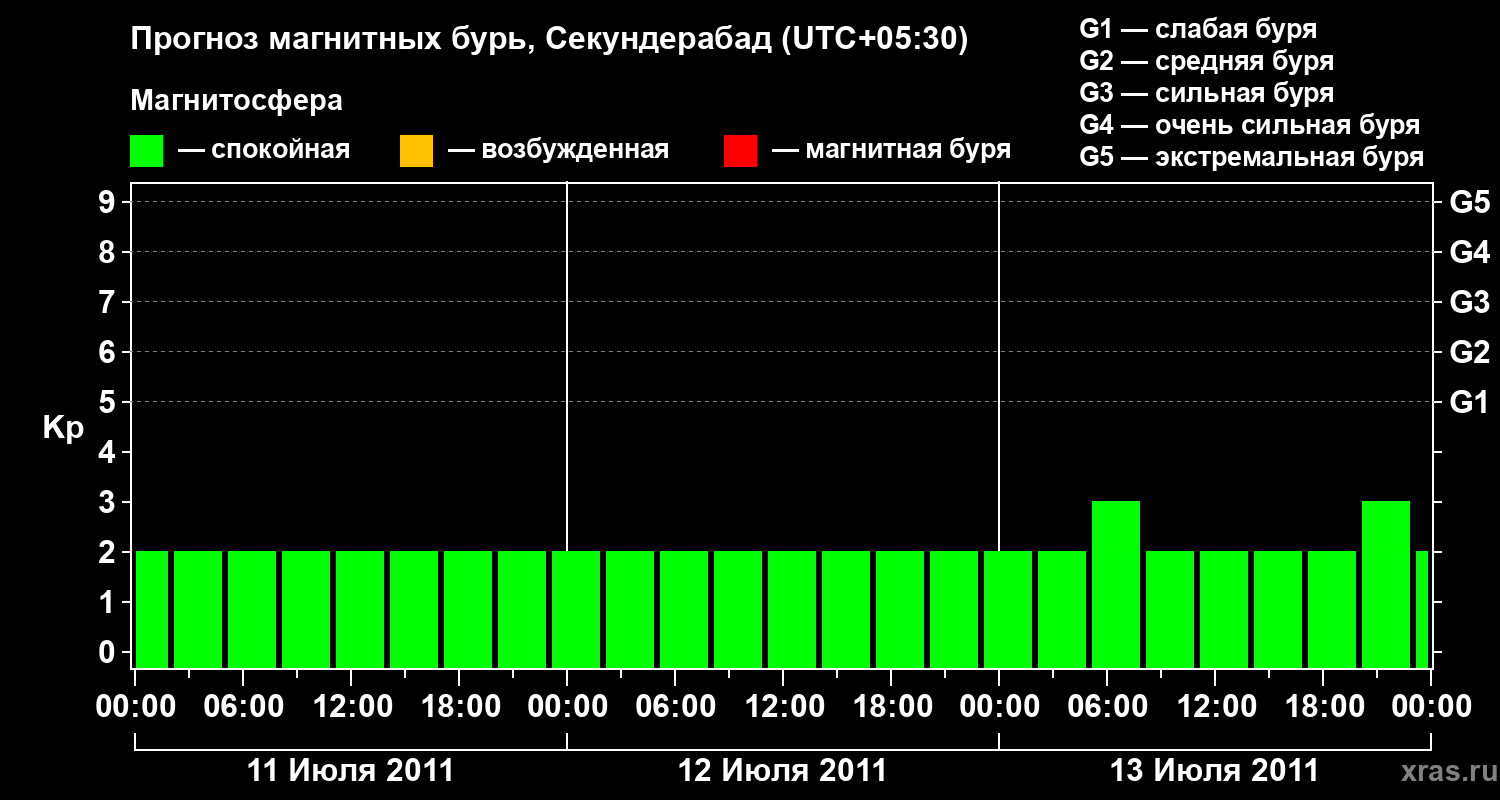 Прогноз магнитных бурь в Секундерабаде — 11 июля 2011 года