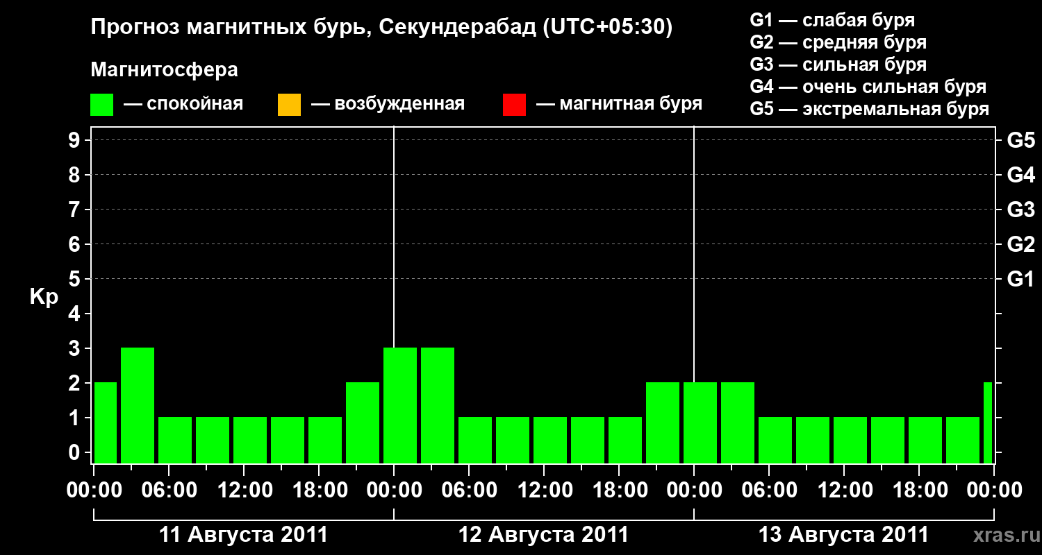 Прогноз магнитных бурь в Секундерабаде — 11 августа 2011 года