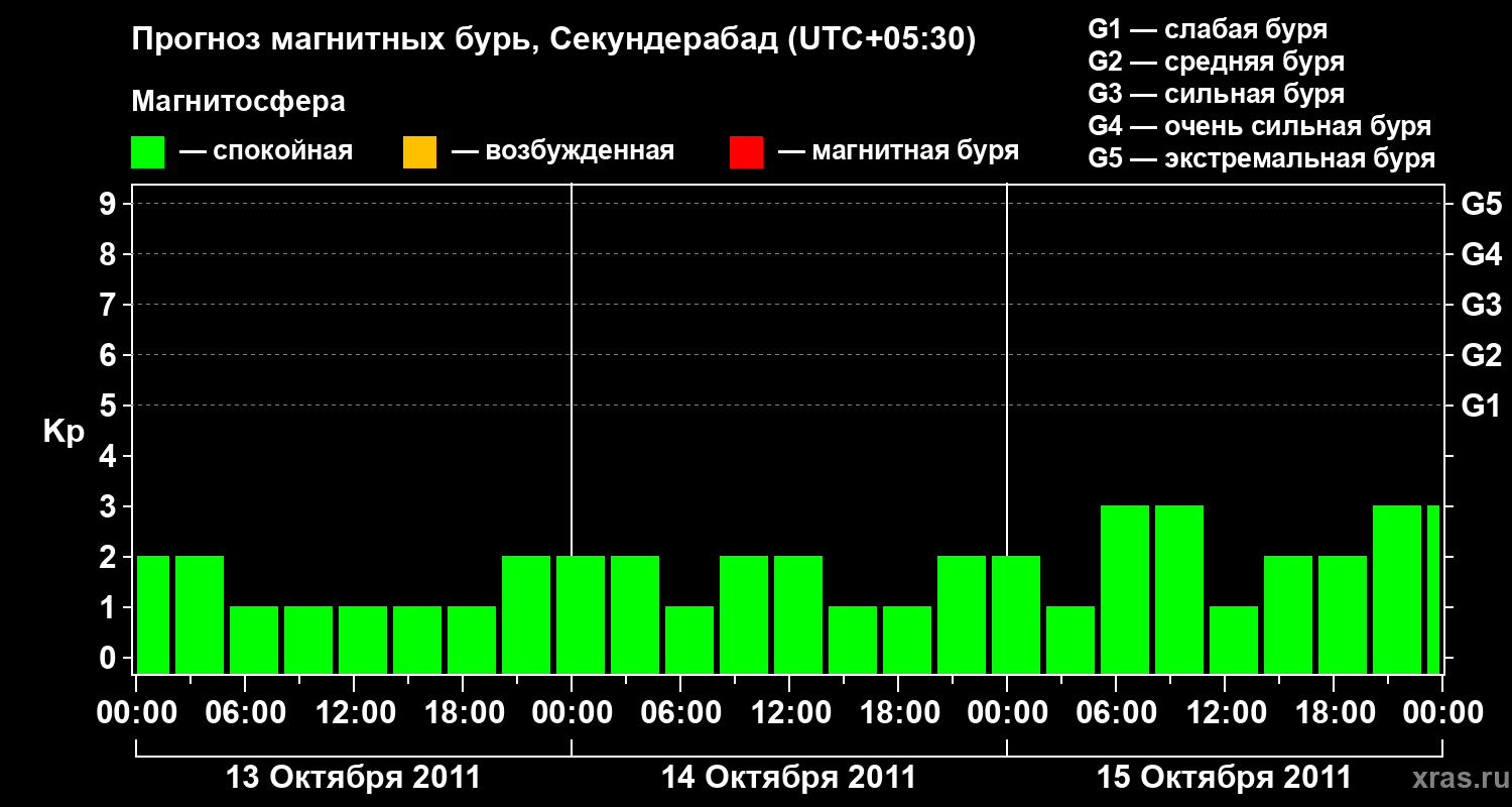 Прогноз магнитных бурь в Секундерабаде — 13 октября 2011 года