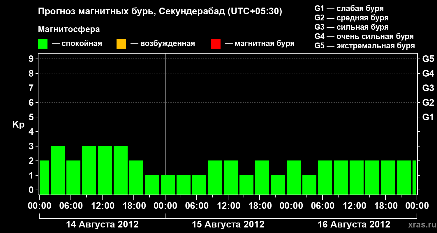Прогноз магнитных бурь в Секундерабаде — 14 августа 2012 года