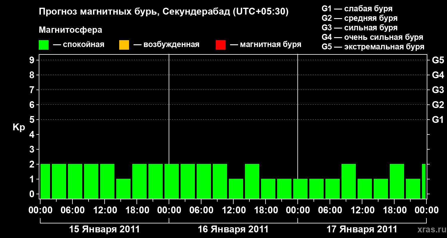 Прогноз магнитных бурь в Секундерабаде — 15 января 2011 года