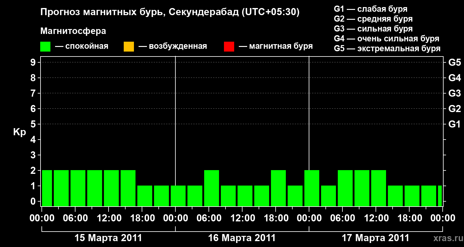 Прогноз магнитных бурь в Секундерабаде — 15 марта 2011 года