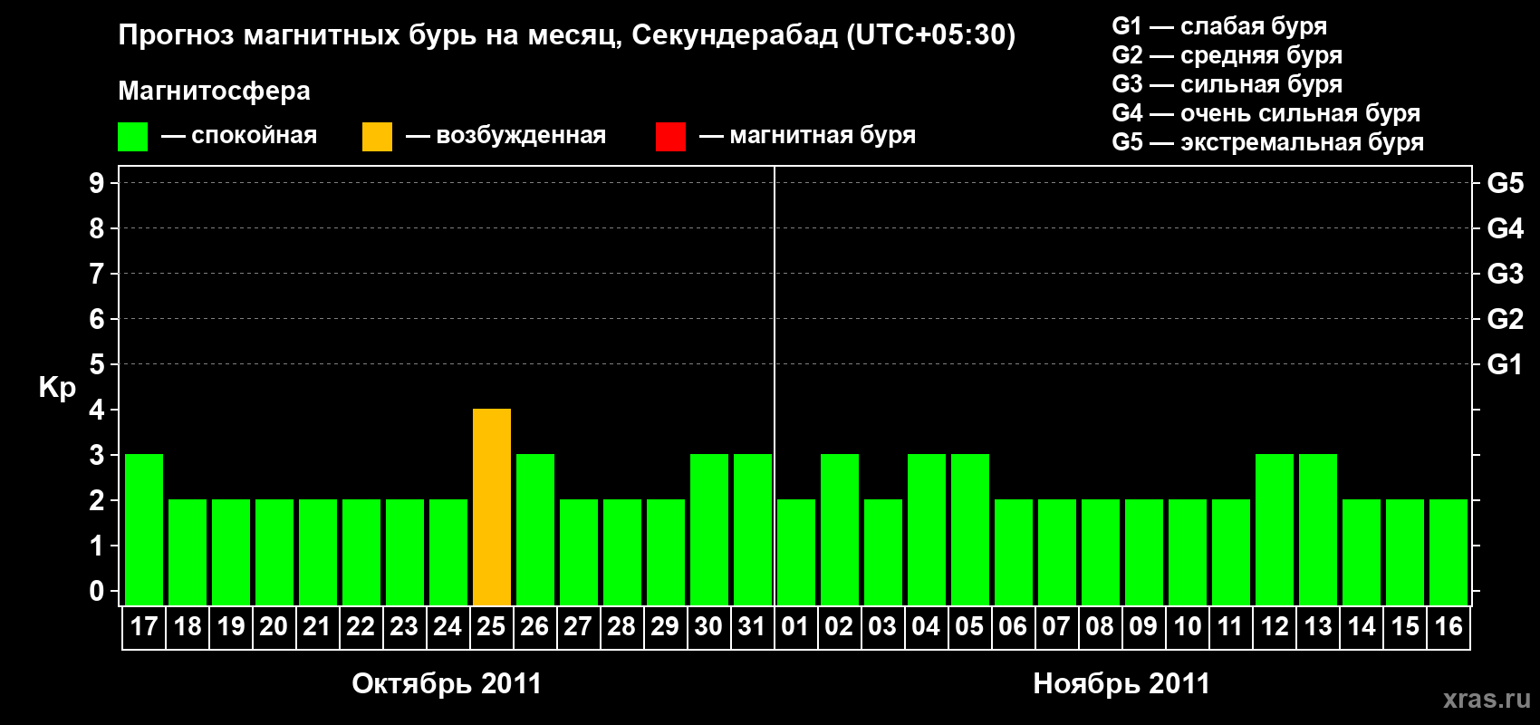 Прогноз магнитных бурь в Секундерабаде — 17 октября 2011 года