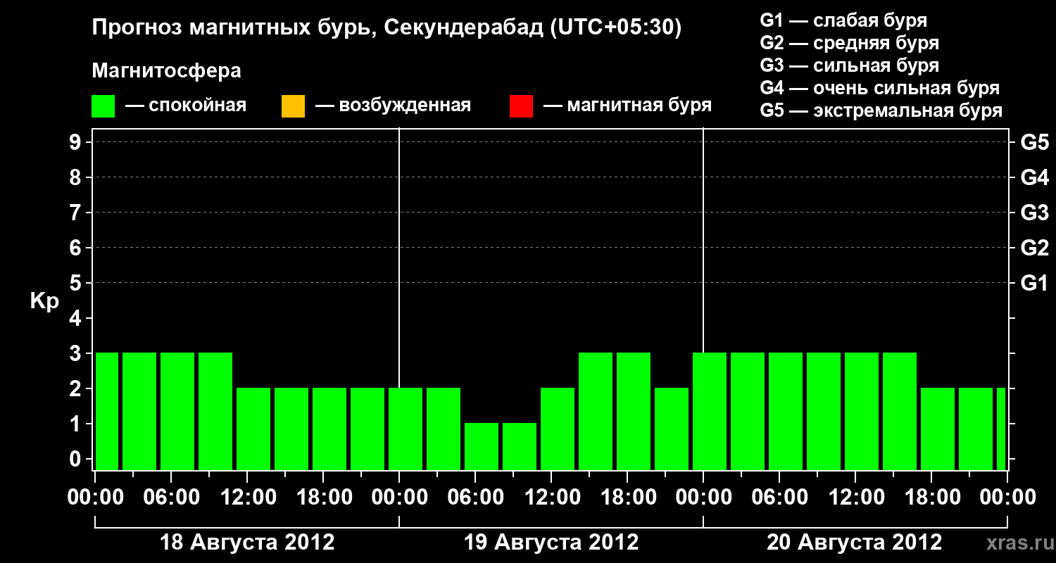 Прогноз магнитных бурь в Секундерабаде — 18 августа 2012 года