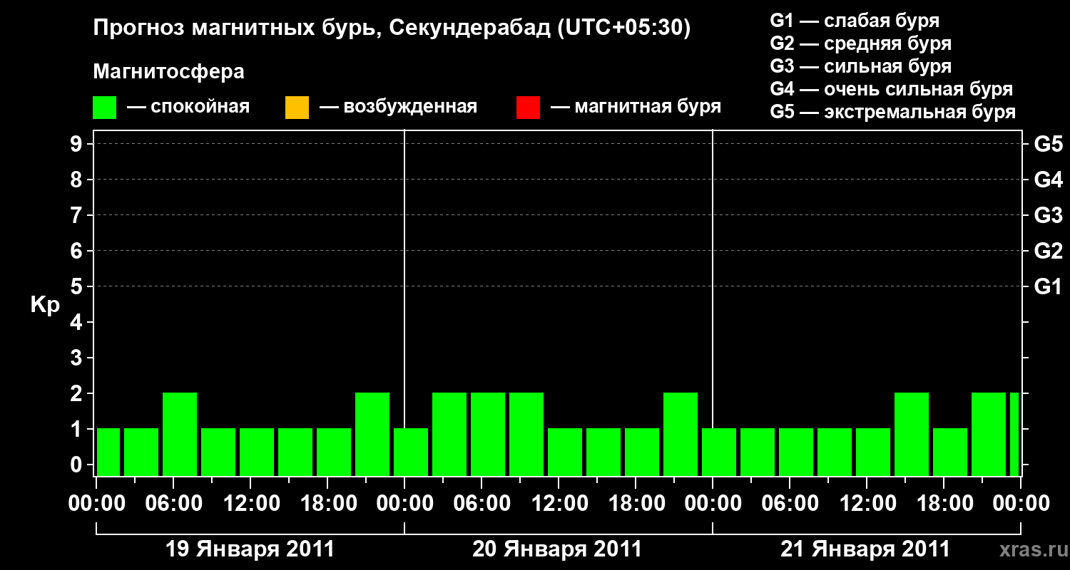 Прогноз магнитных бурь в Секундерабаде — 19 января 2011 года