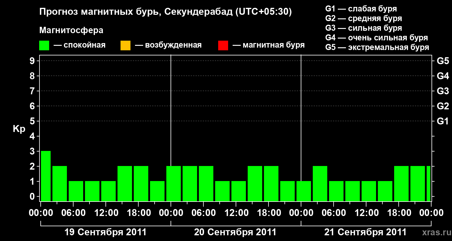 Прогноз магнитных бурь в Секундерабаде — 19 сентября 2011 года