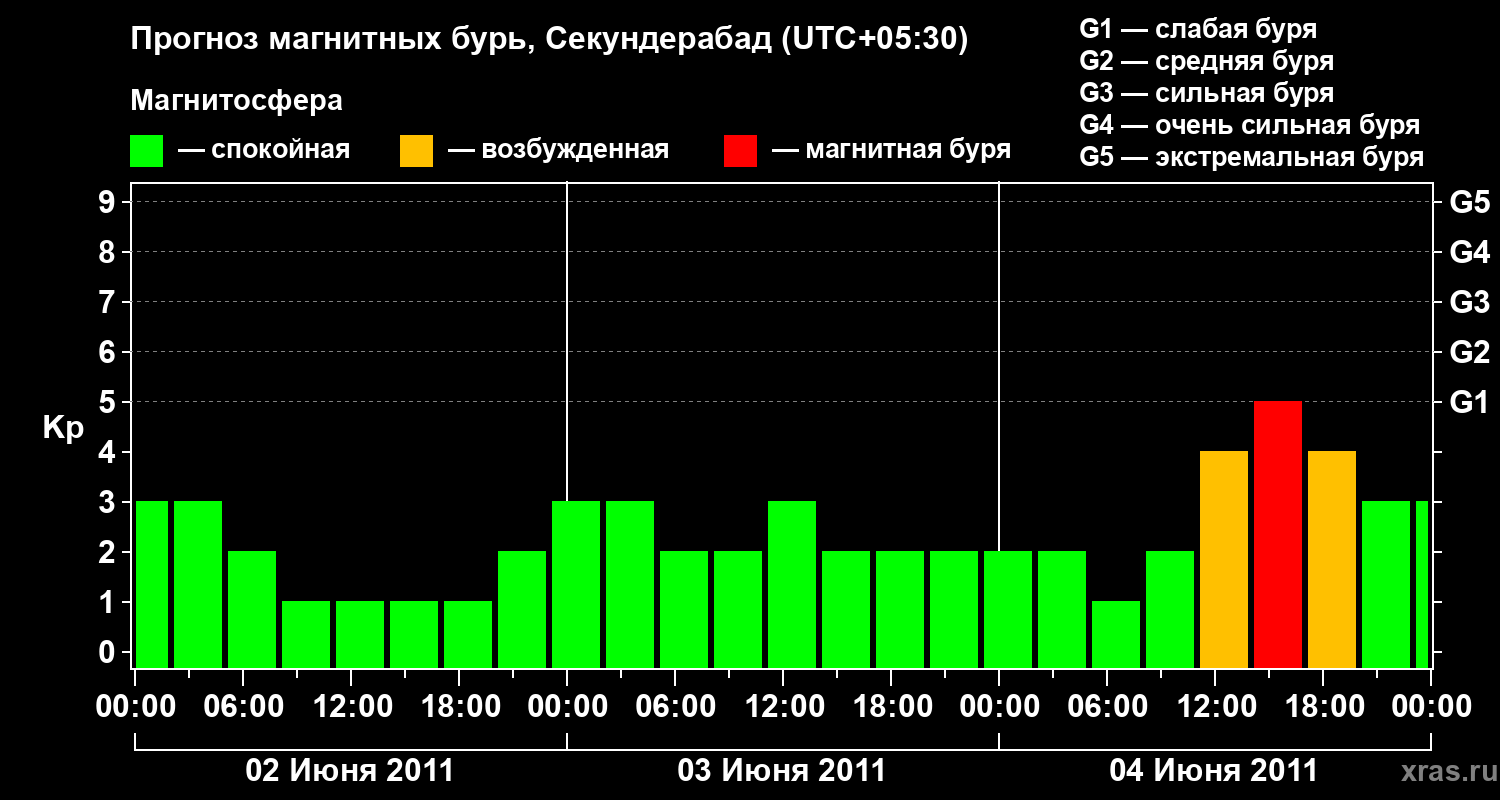 Прогноз магнитных бурь в Секундерабаде — 2 июня 2011 года