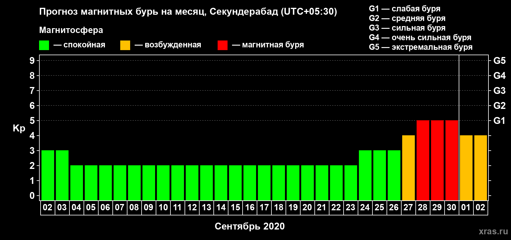 Прогноз магнитных бурь в Секундерабаде — 2 сентября 2020 года