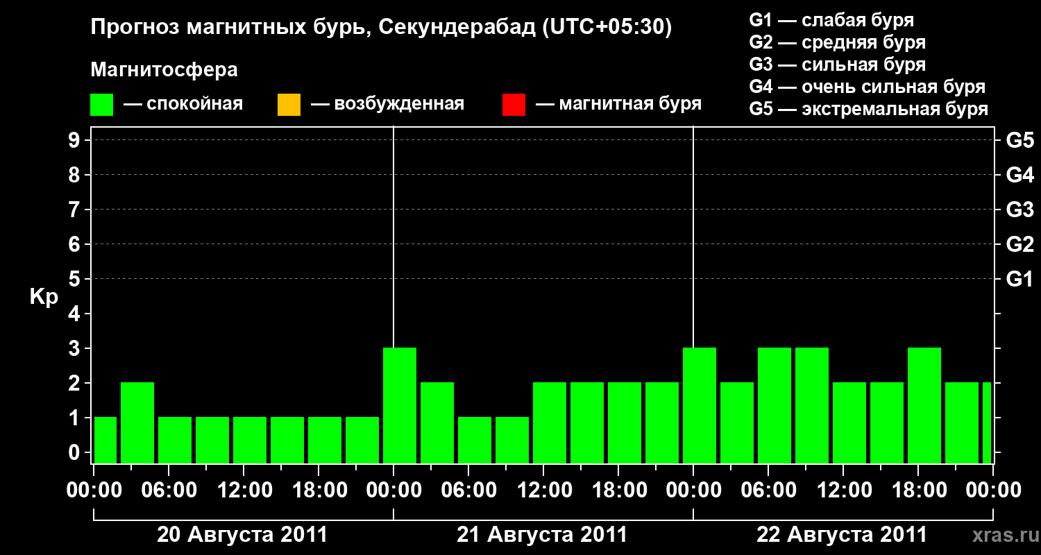 Прогноз магнитных бурь в Секундерабаде — 20 августа 2011 года