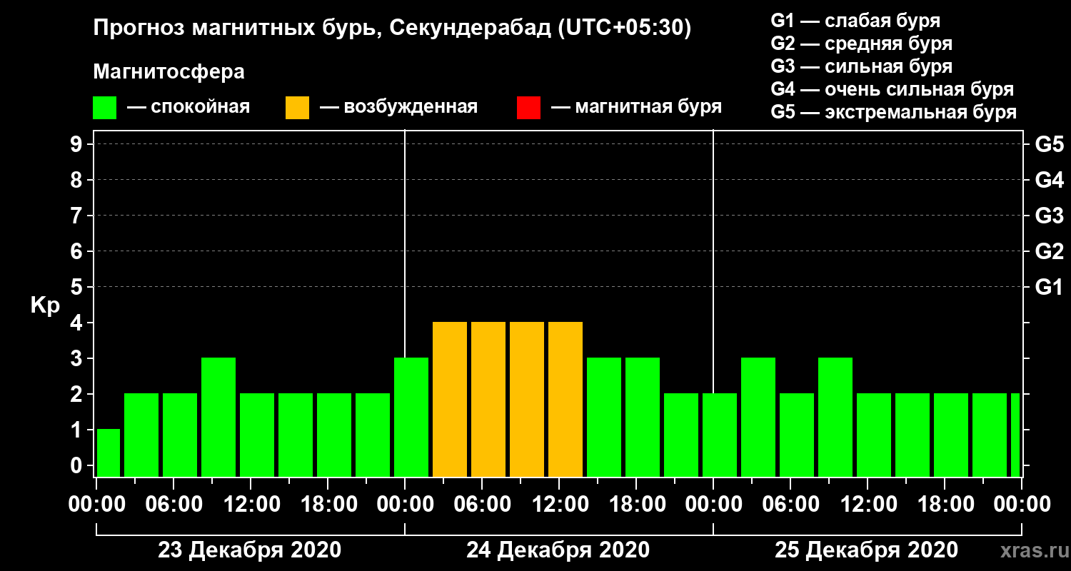 Прогноз магнитных бурь в Секундерабаде — 23 декабря 2020 года