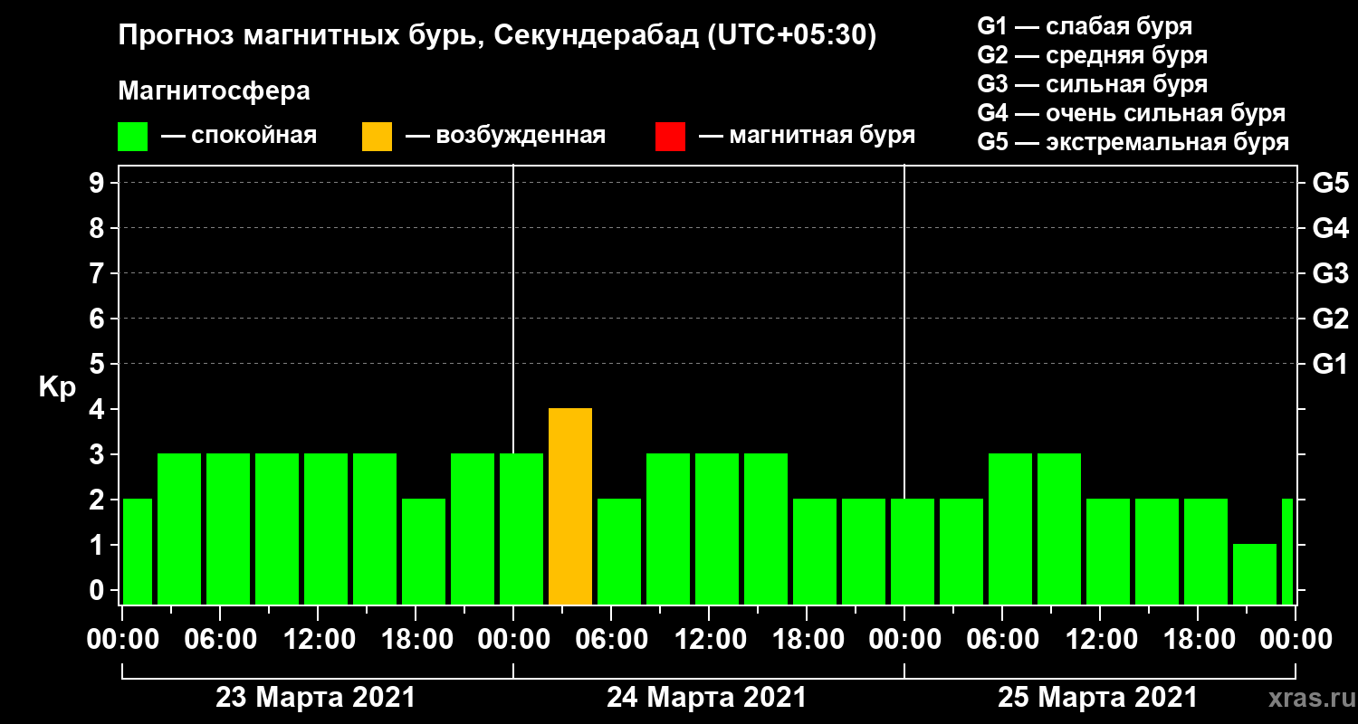Прогноз магнитных бурь в Секундерабаде — 23 марта 2021 года