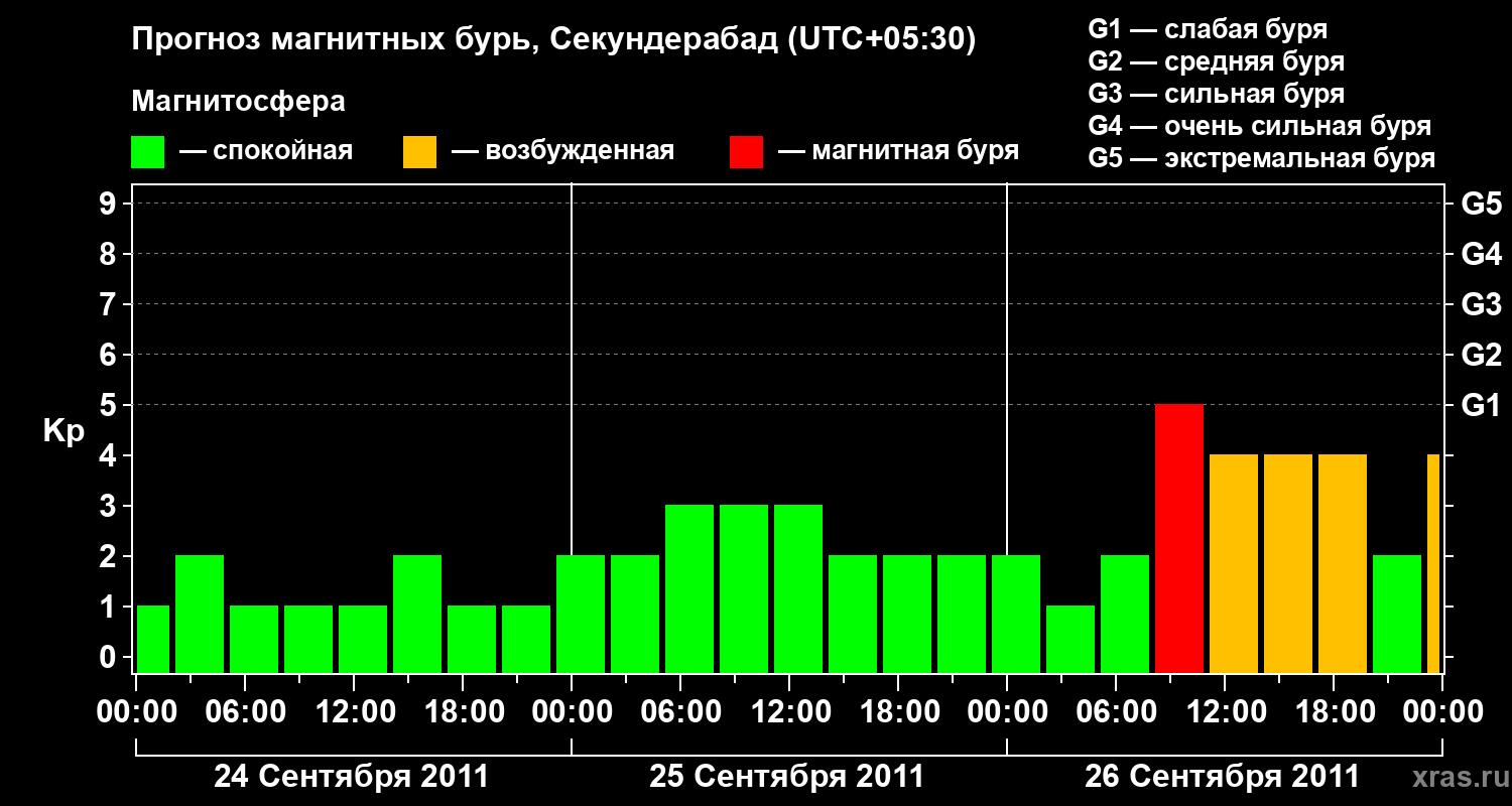 Прогноз магнитных бурь в Секундерабаде — 24 сентября 2011 года