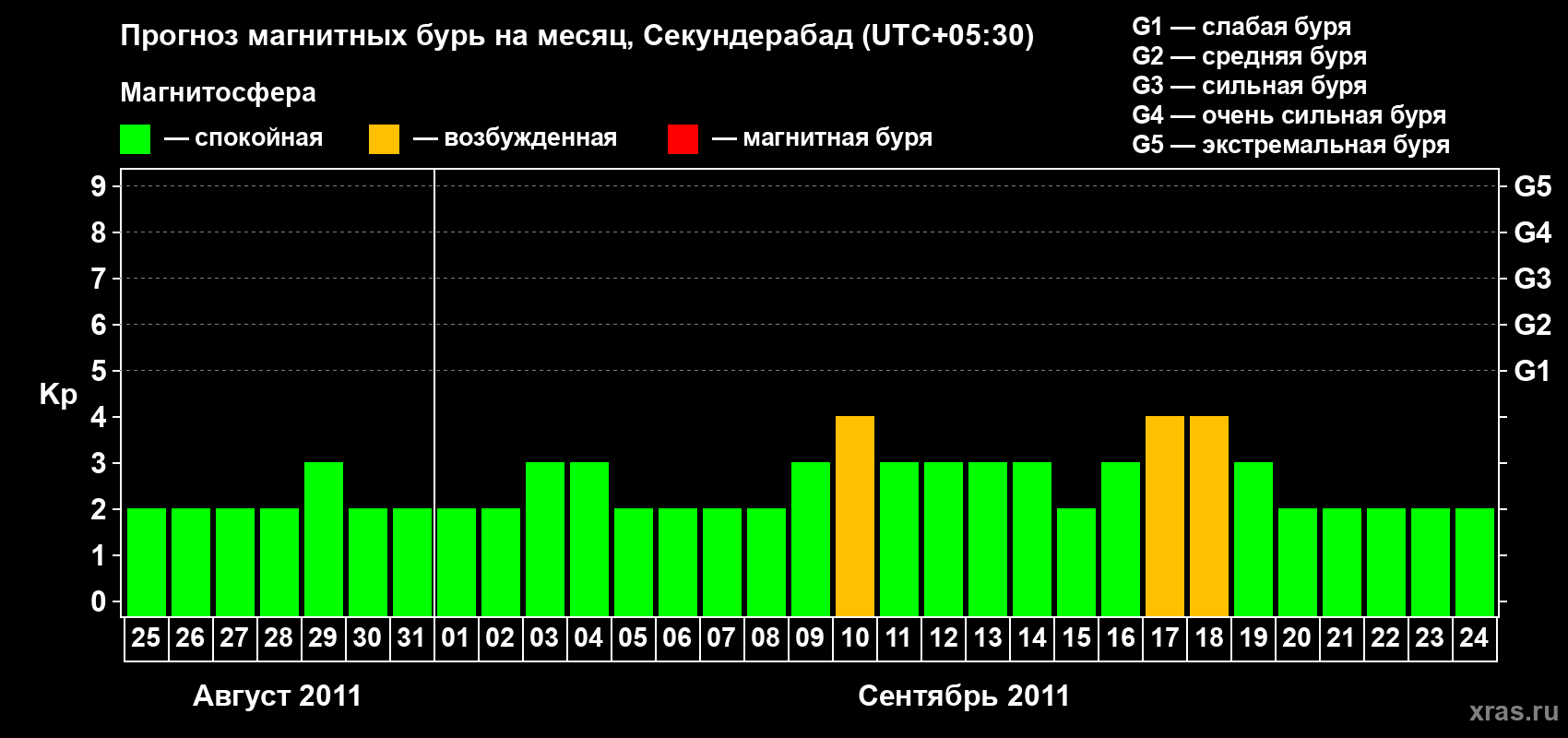 Прогноз магнитных бурь в Секундерабаде — 25 августа 2011 года
