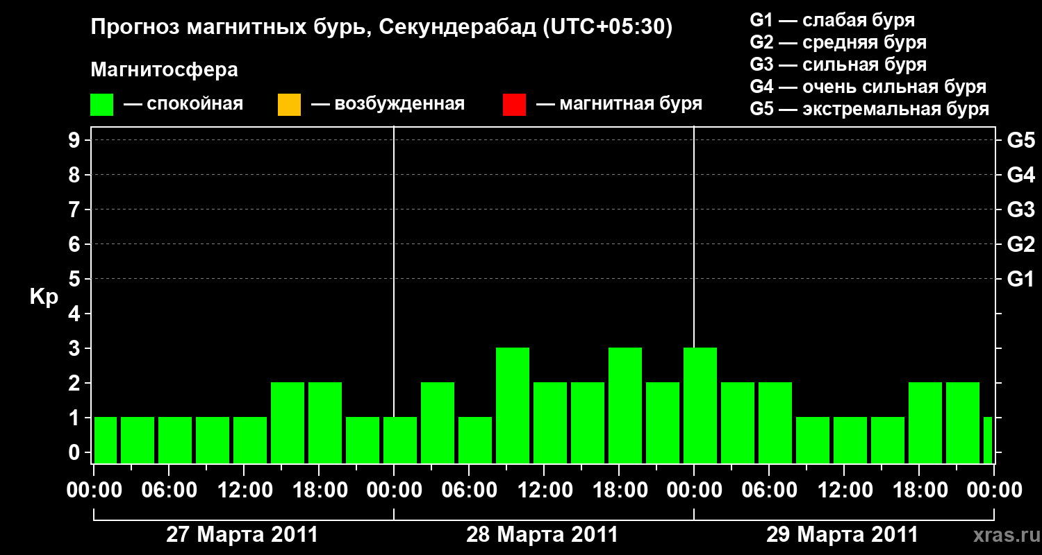 Прогноз магнитных бурь в Секундерабаде — 27 марта 2011 года