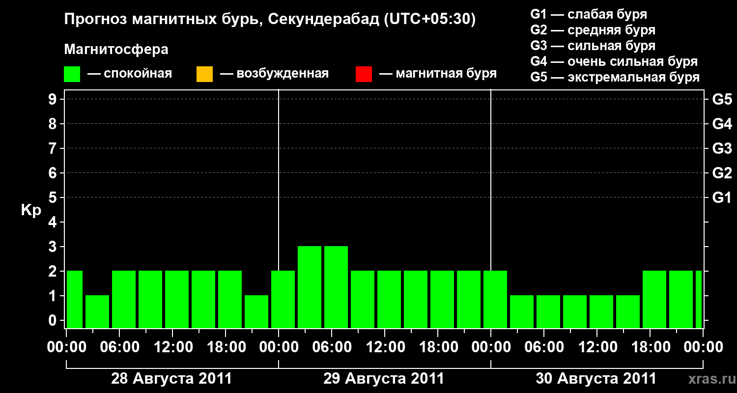 Прогноз магнитных бурь в Секундерабаде — 28 августа 2011 года