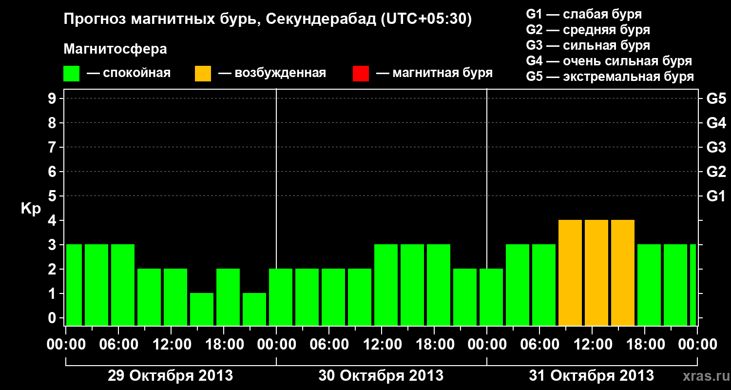 Прогноз магнитных бурь в Секундерабаде — 29 октября 2013 года