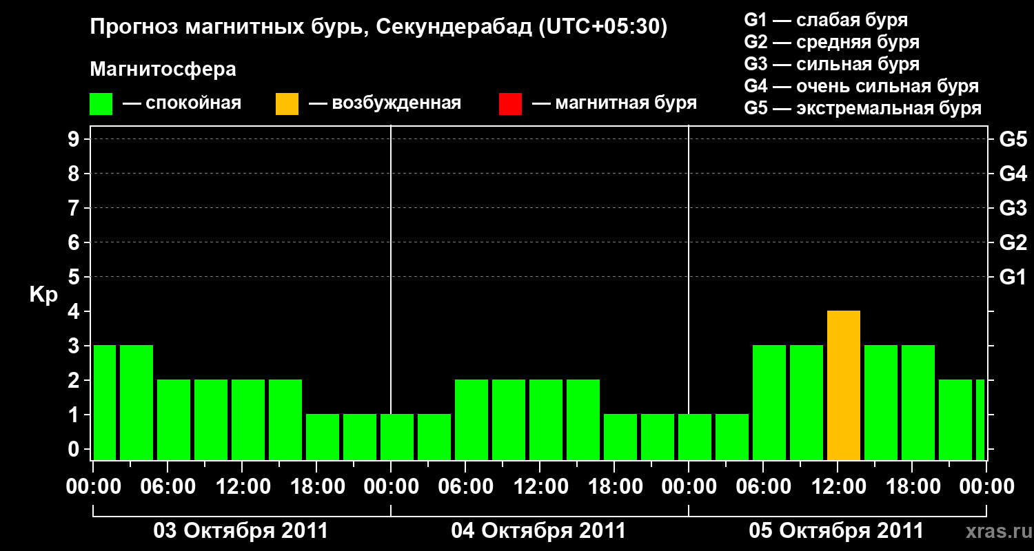 Прогноз магнитных бурь в Секундерабаде — 3 октября 2011 года