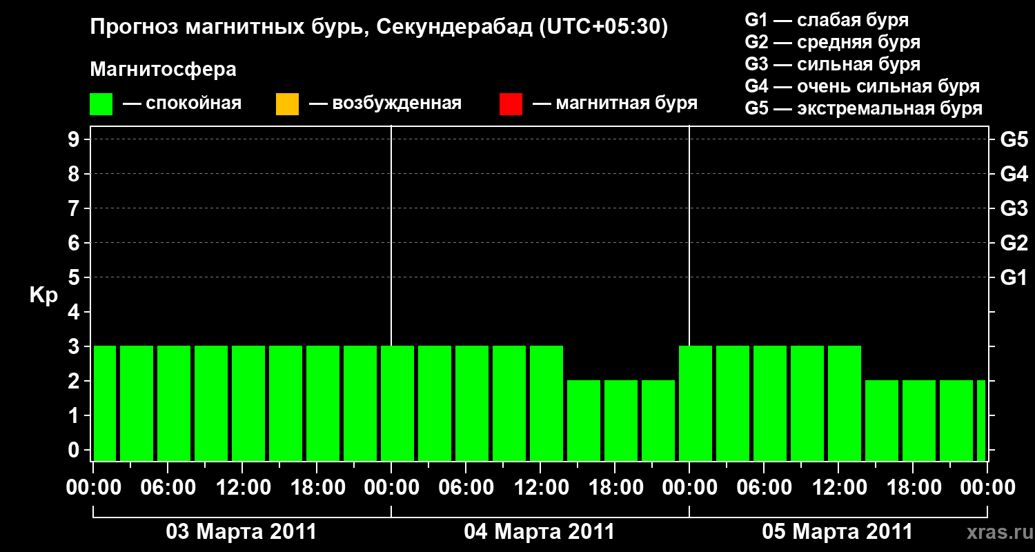 Прогноз магнитных бурь в Секундерабаде — 3 марта 2011 года