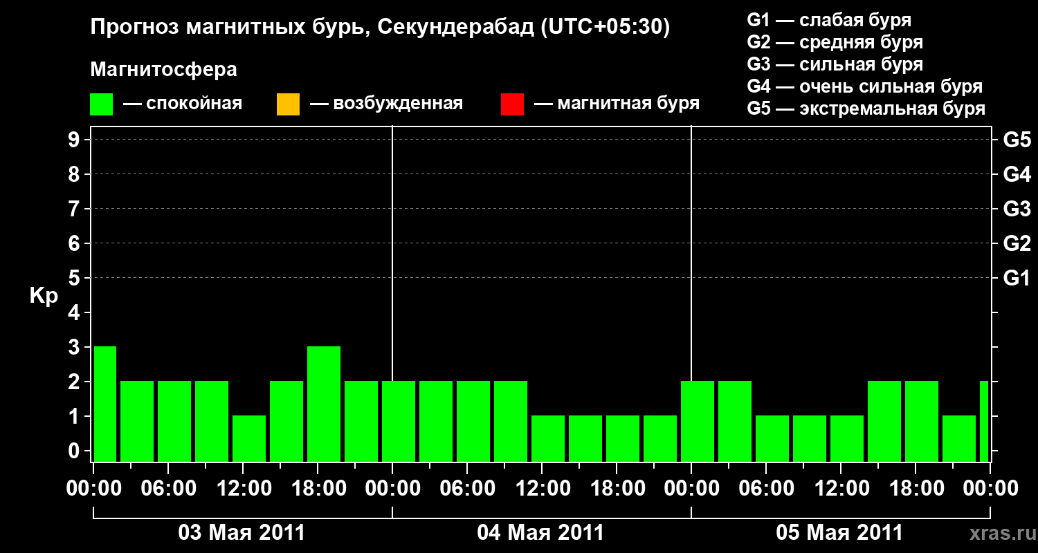Прогноз магнитных бурь в Секундерабаде — 3 мая 2011 года