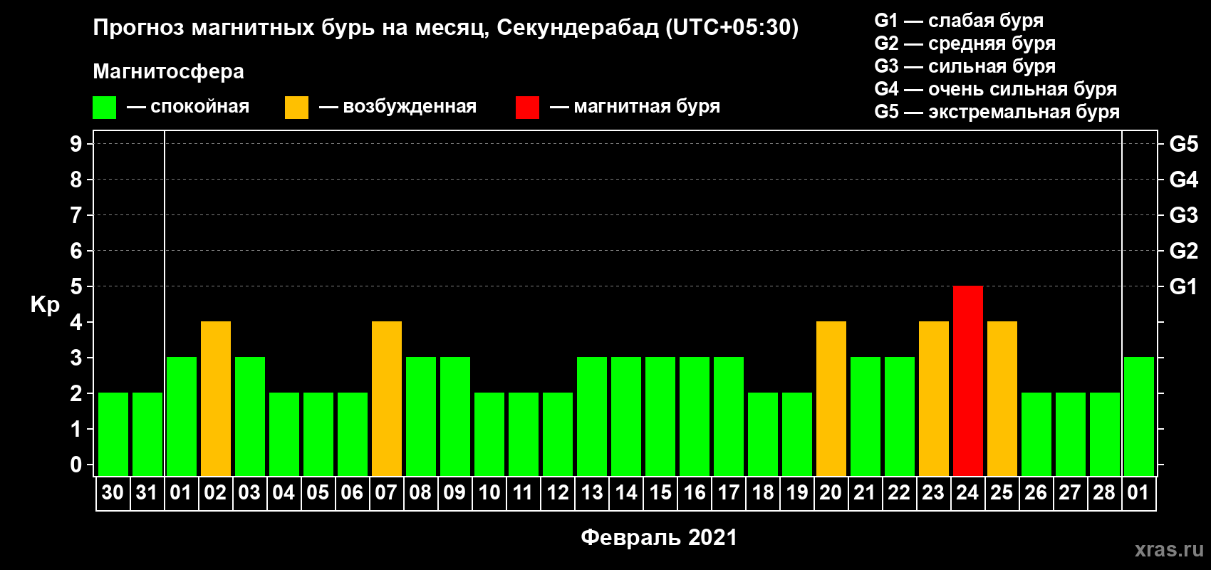 Прогноз магнитных бурь в Секундерабаде — 30 января 2021 года