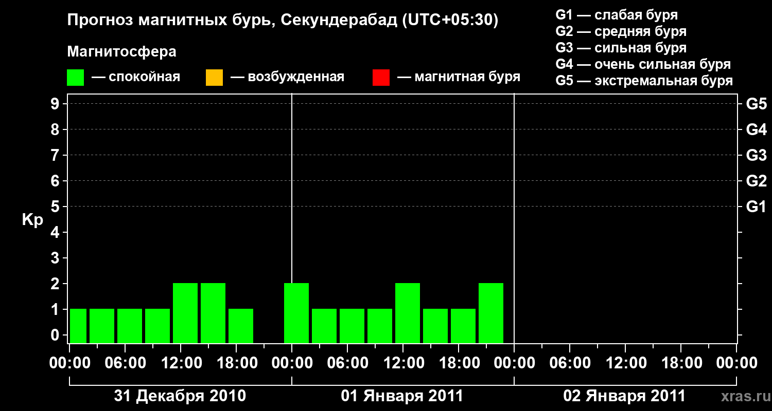 Прогноз магнитных бурь в Секундерабаде — 31 декабря 2010 года