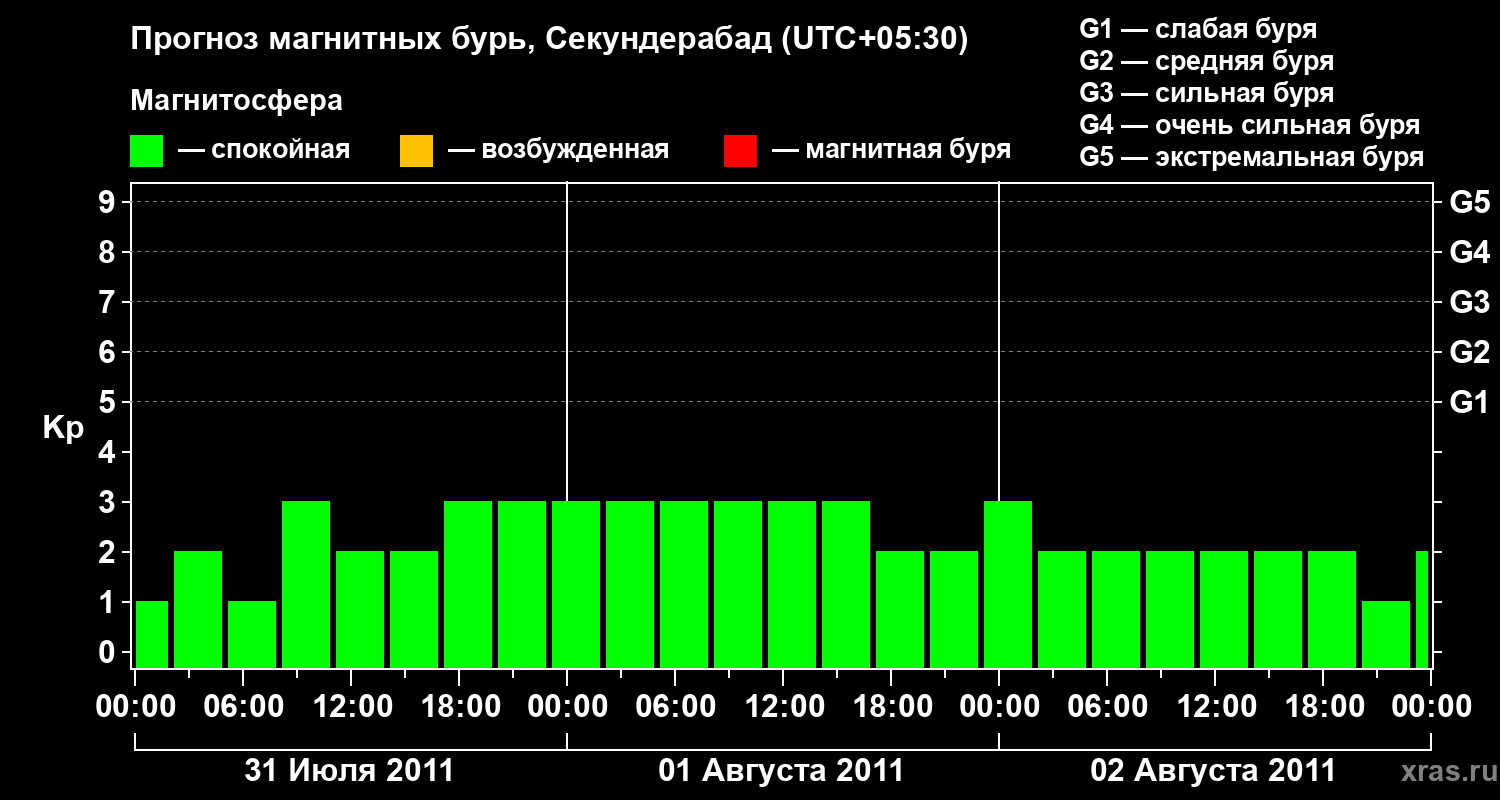 Прогноз магнитных бурь в Секундерабаде — 31 июля 2011 года