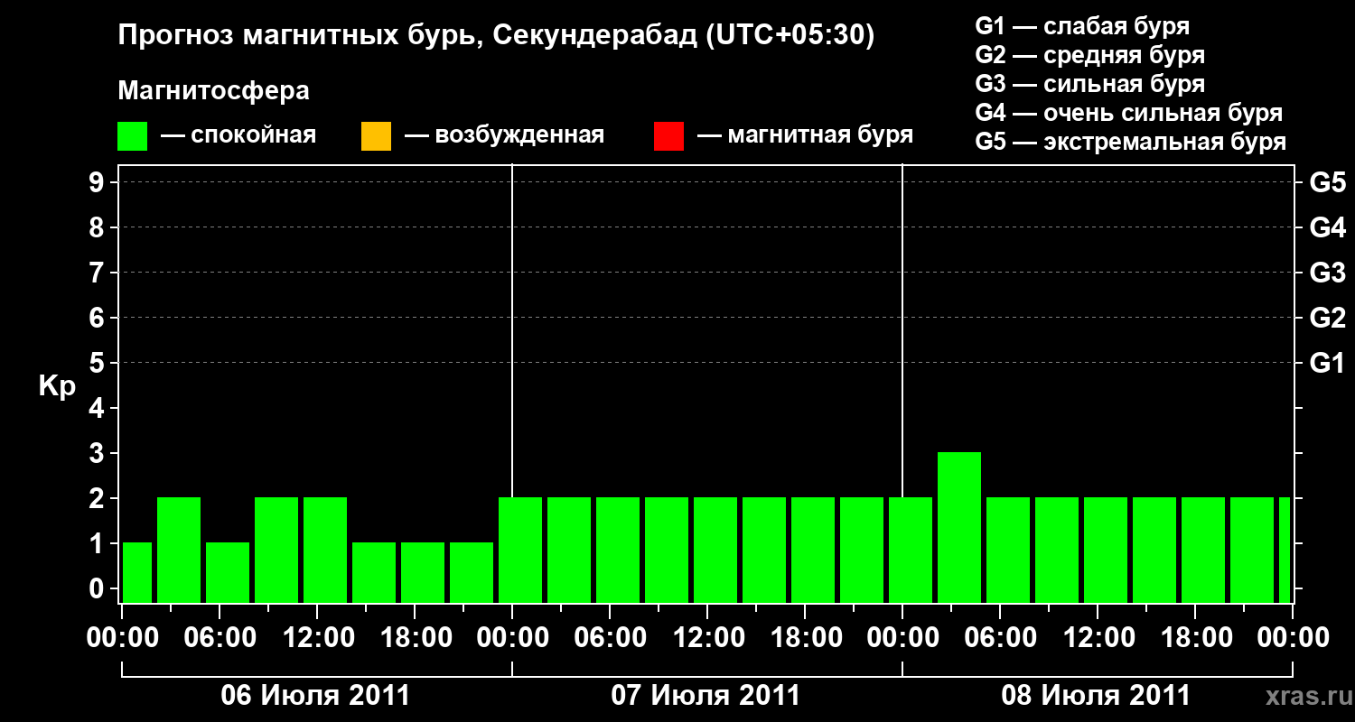 Прогноз магнитных бурь в Секундерабаде — 6 июля 2011 года