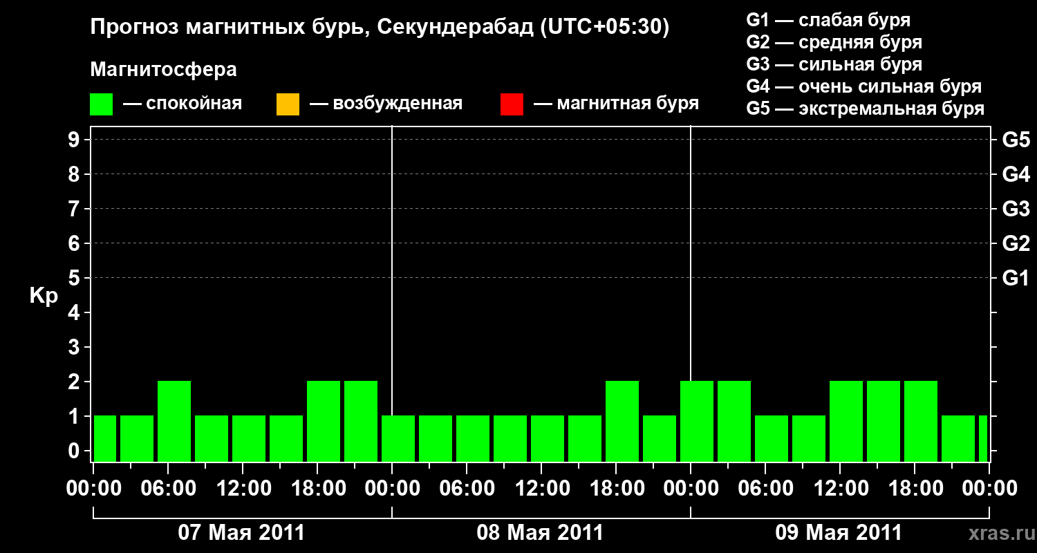 Прогноз магнитных бурь в Секундерабаде — 7 мая 2011 года