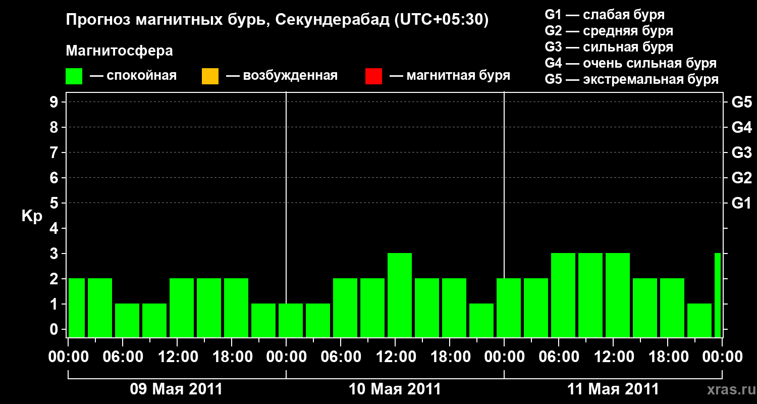 Прогноз магнитных бурь в Секундерабаде — 9 мая 2011 года