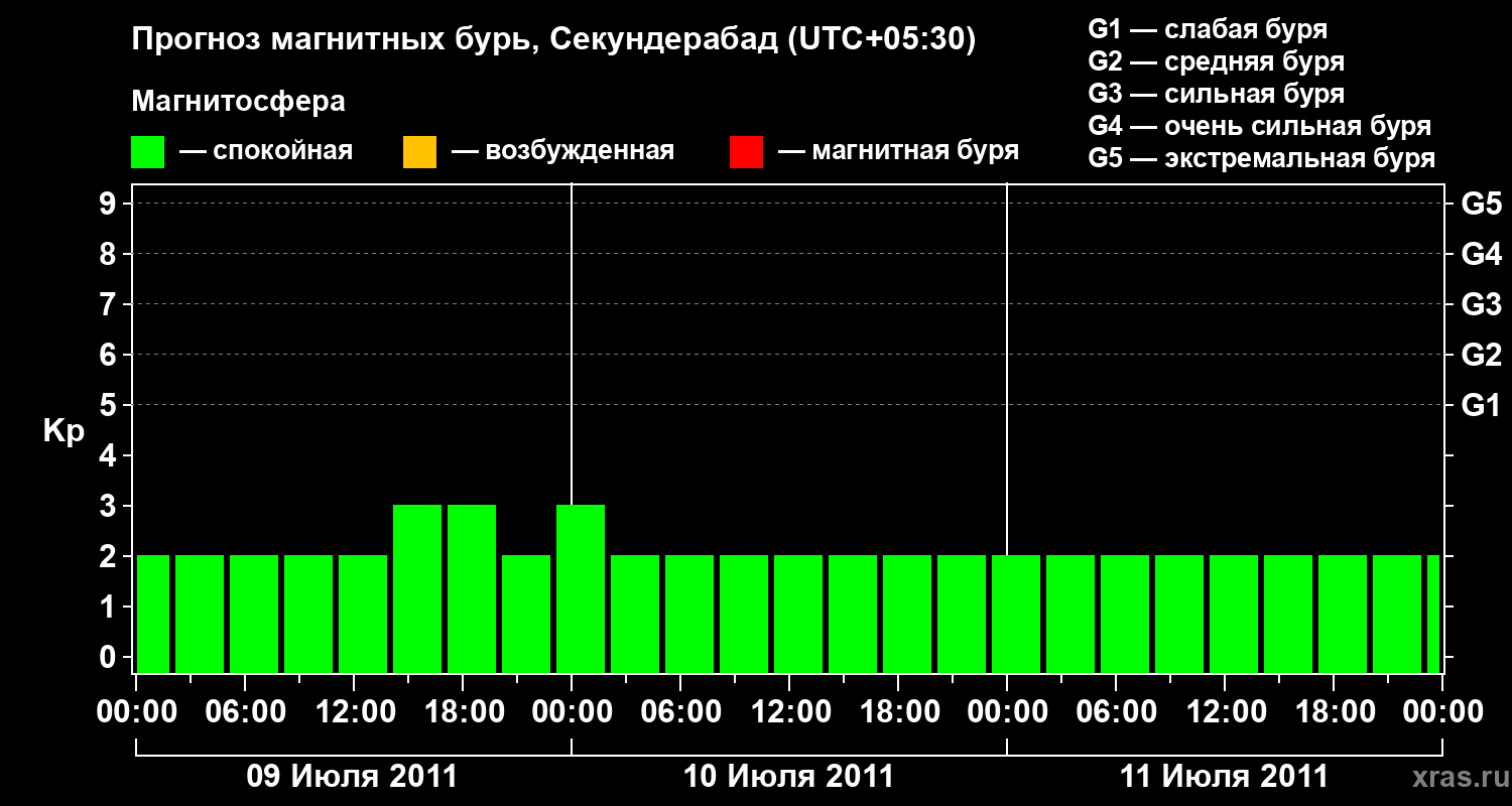 Прогноз магнитных бурь в Секундерабаде — 9 июля 2011 года