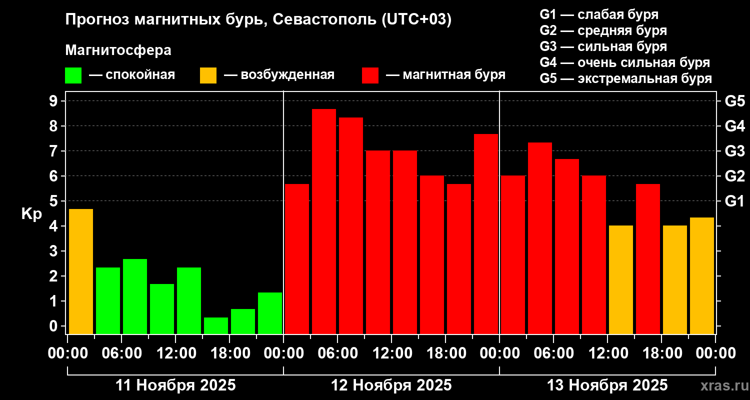 Прогноз магнитных бурь в Севастополе — 11 ноября 2025 года