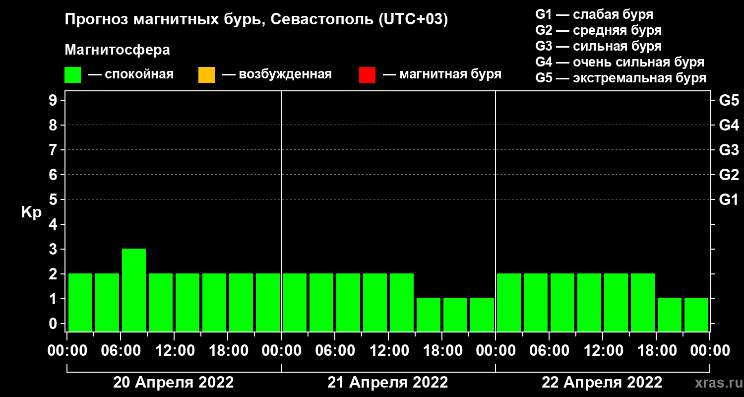 Прогноз магнитных бурь в Севастополе — 20 апреля 2022 года