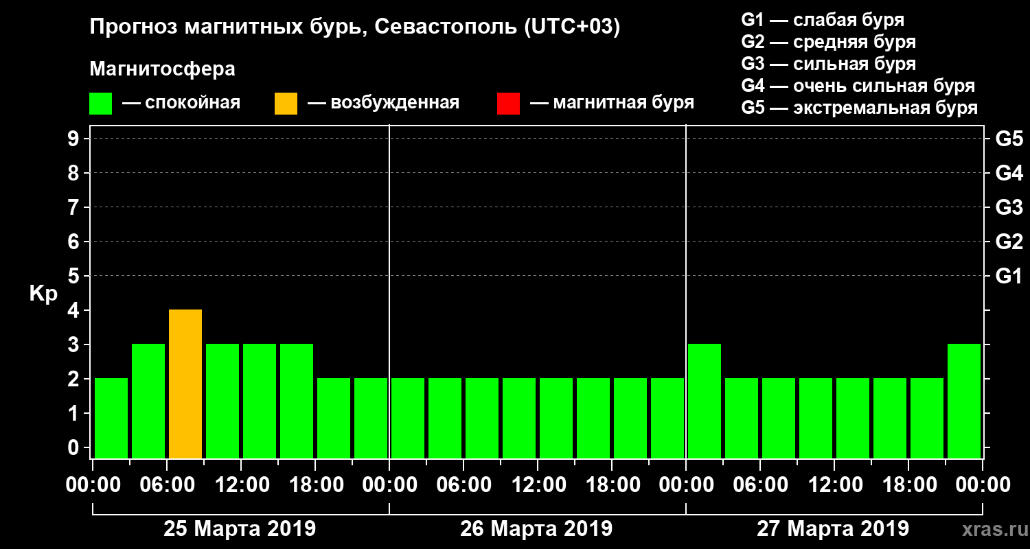 Прогноз магнитных бурь в Севастополе на 25 марта 2019 года