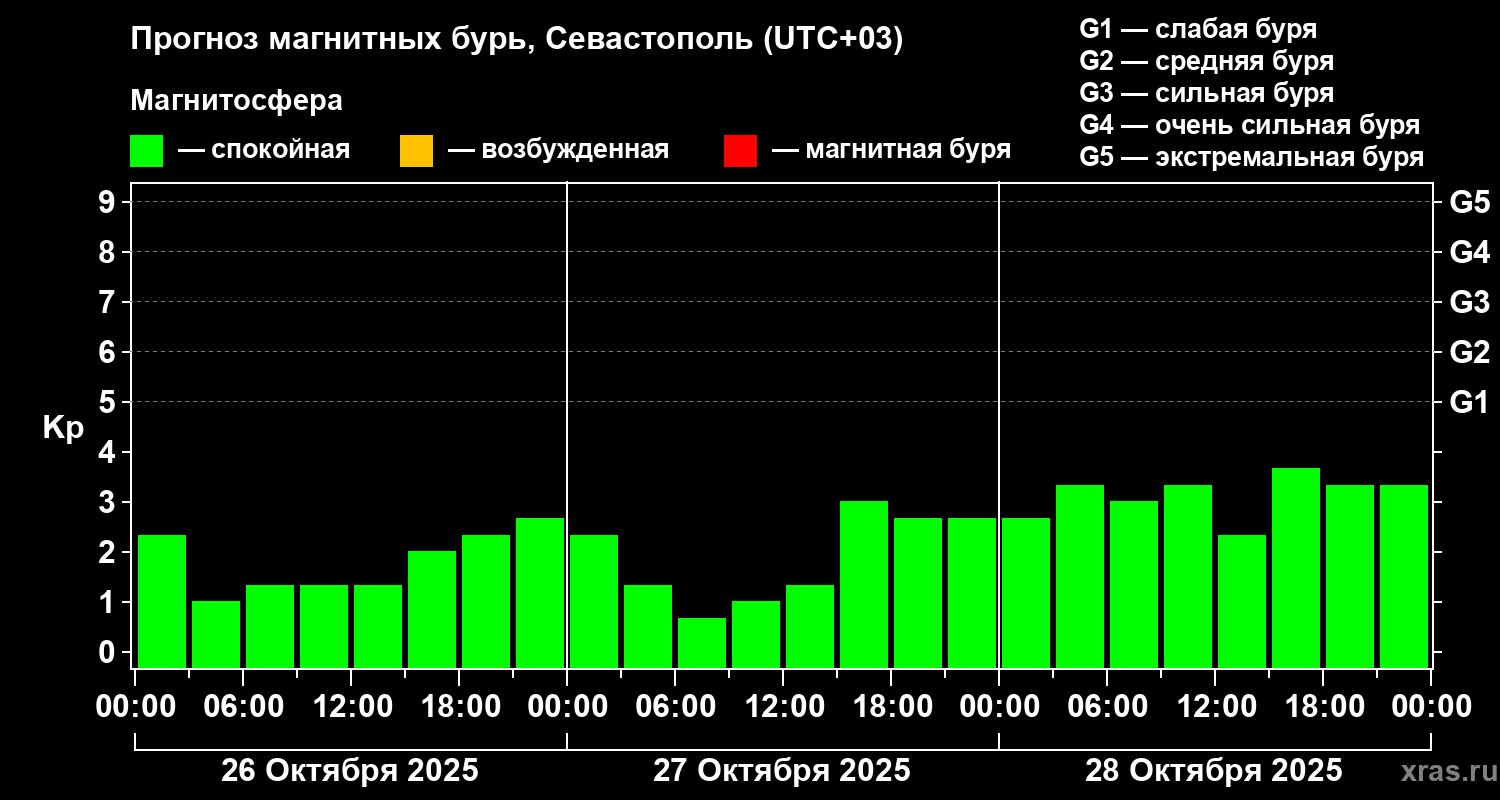 Прогноз магнитных бурь в Севастополе — 26 октября 2025 года
