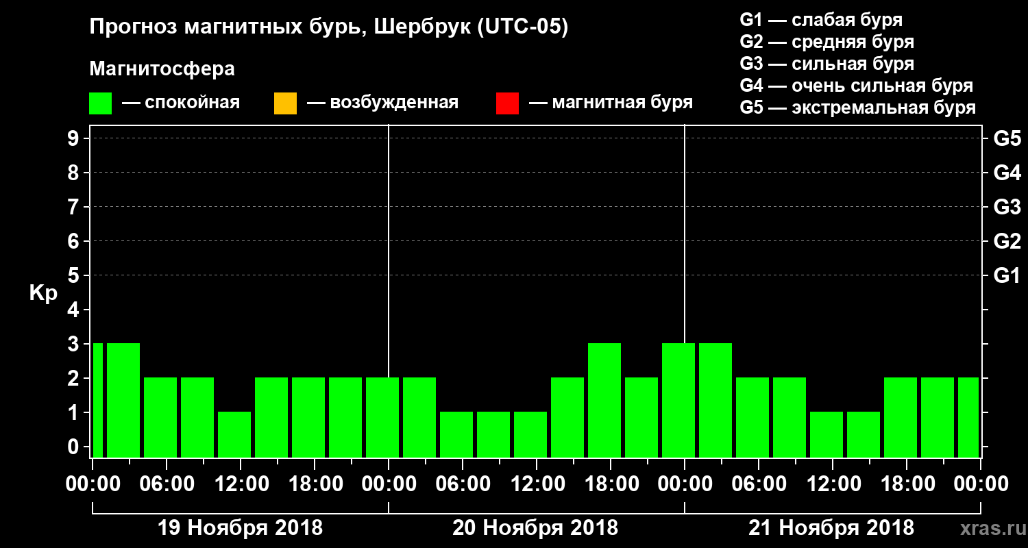 Прогноз магнитных бурь в Шербруке — 19 ноября 2018 года