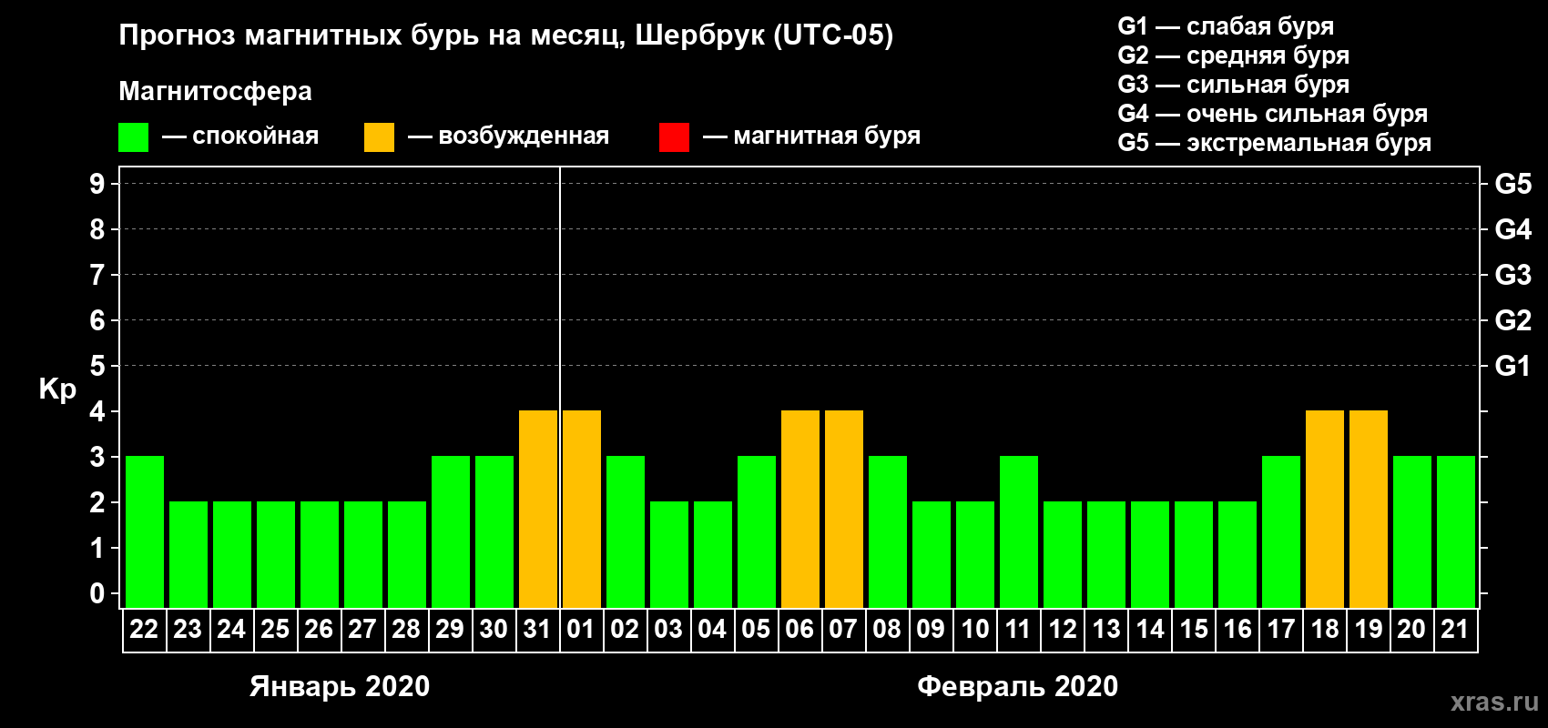 Прогноз магнитных бурь в Шербруке — 22 января 2020 года