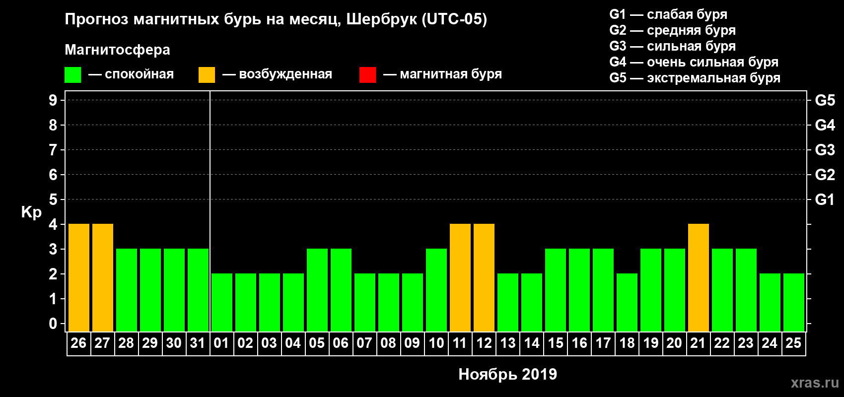 Прогноз магнитных бурь в Шербруке — 26 октября 2019 года