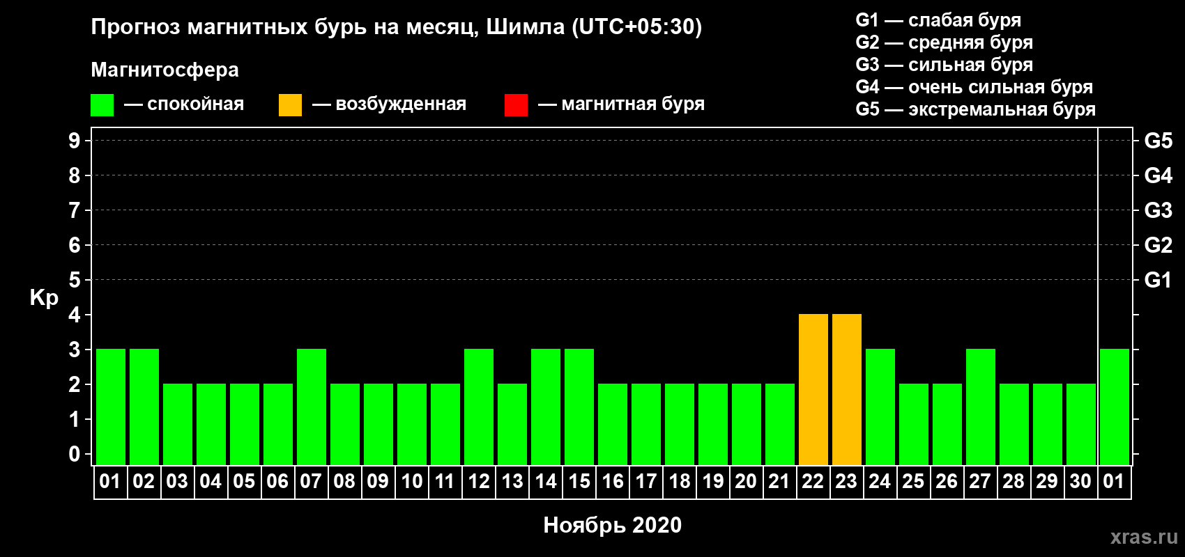 Прогноз магнитных бурь в Шимле — 1 ноября 2020 года