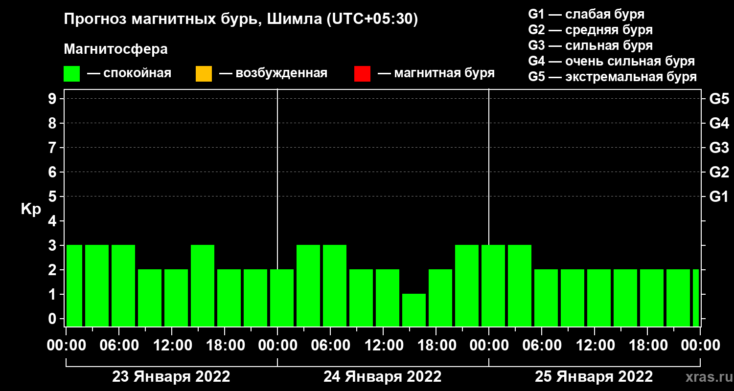 Прогноз магнитных бурь в Шимле — 23 января 2022 года