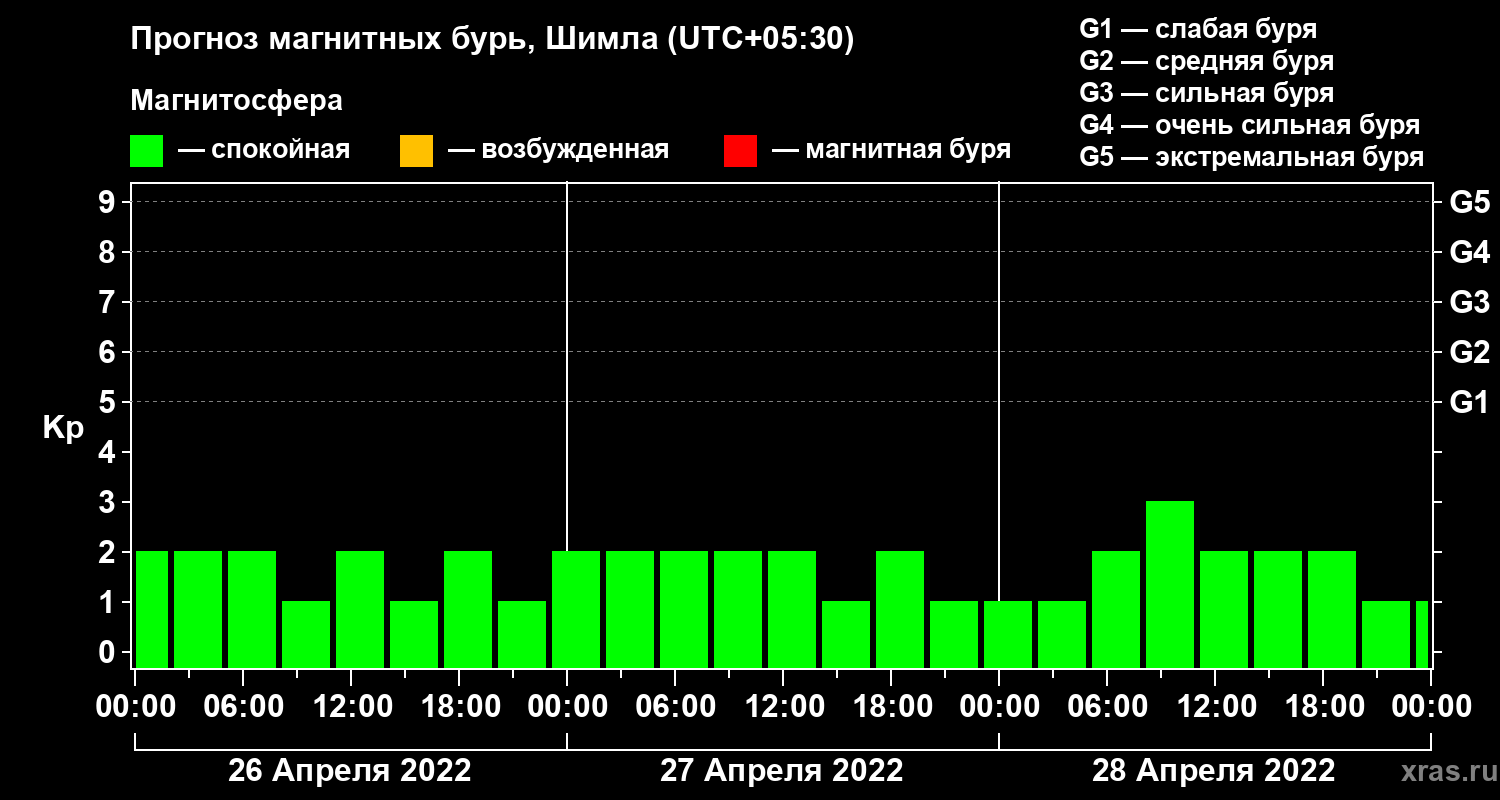Прогноз магнитных бурь в Шимле — 26 апреля 2022 года