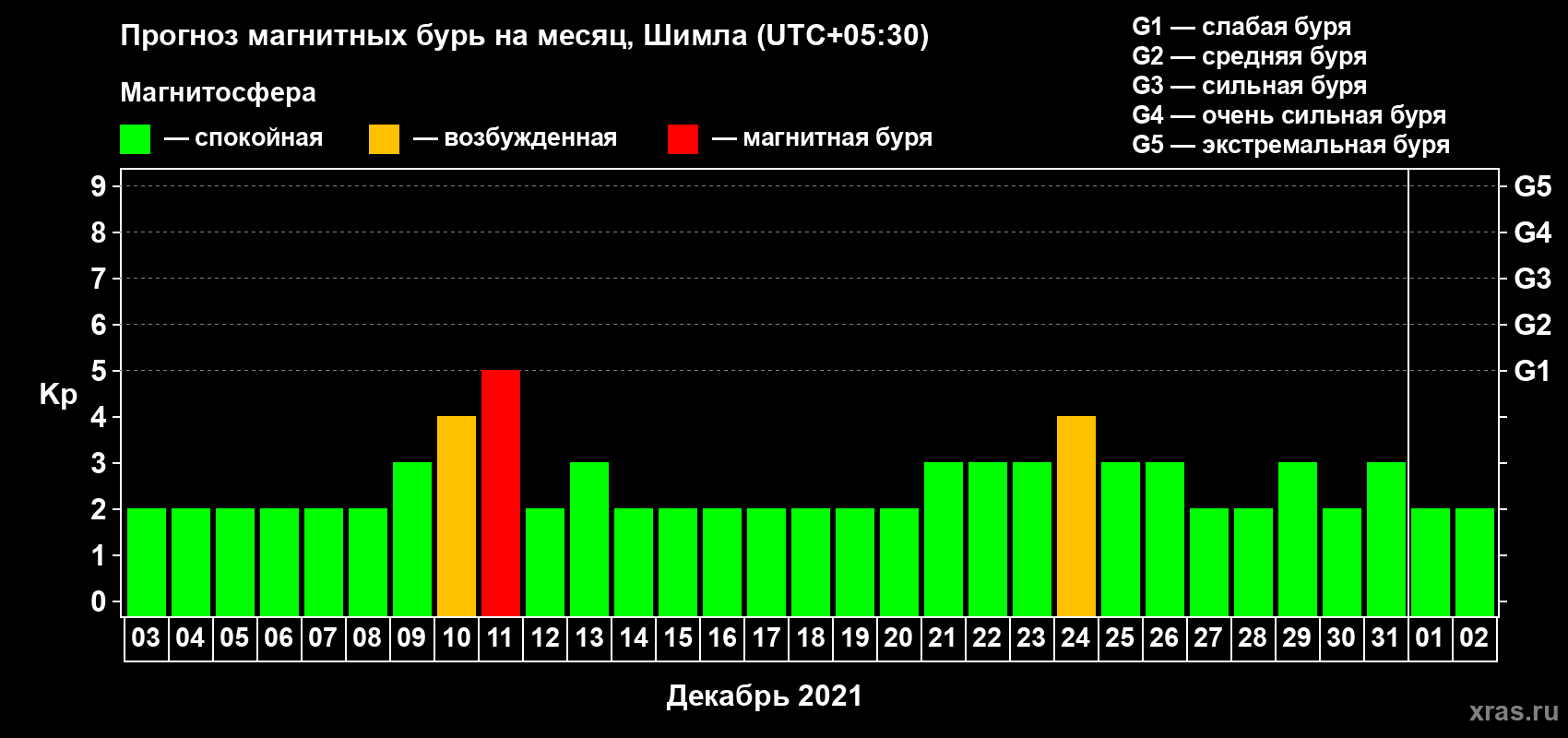 Прогноз магнитных бурь в Шимле — 3 декабря 2020 года