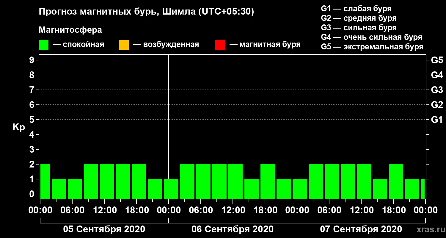 Прогноз магнитных бурь в Шимле — 5 сентября 2020 года