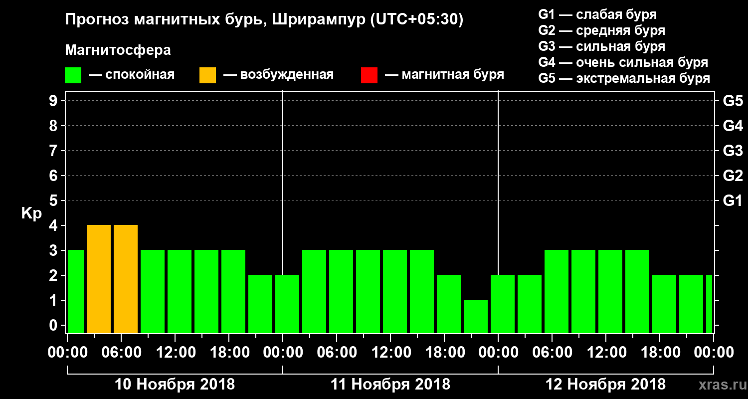 Прогноз магнитных бурь в Шрирампуре — 10 ноября 2018 года