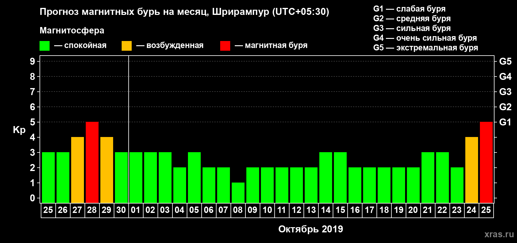 Прогноз магнитных бурь в Шрирампуре — 25 сентября 2019 года